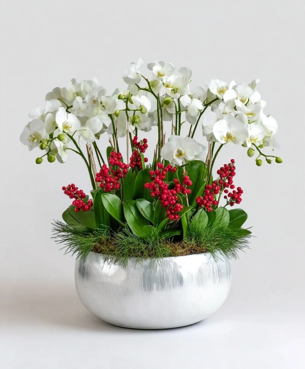 The delicate beauty of the Phalaenopsis orchids ensures this planter offers unmatched aesthetic appeal. Unlike traditional decorations, these orchids add a sense of grace and tranquility to your surroundings. Their compact design makes them ideal for smaller spaces, blending seamlessly into modern and classic interiors alike. Whether displayed on a coffee table, office desk, or as part of your festive decor, their presence will leave an unforgettable impression.